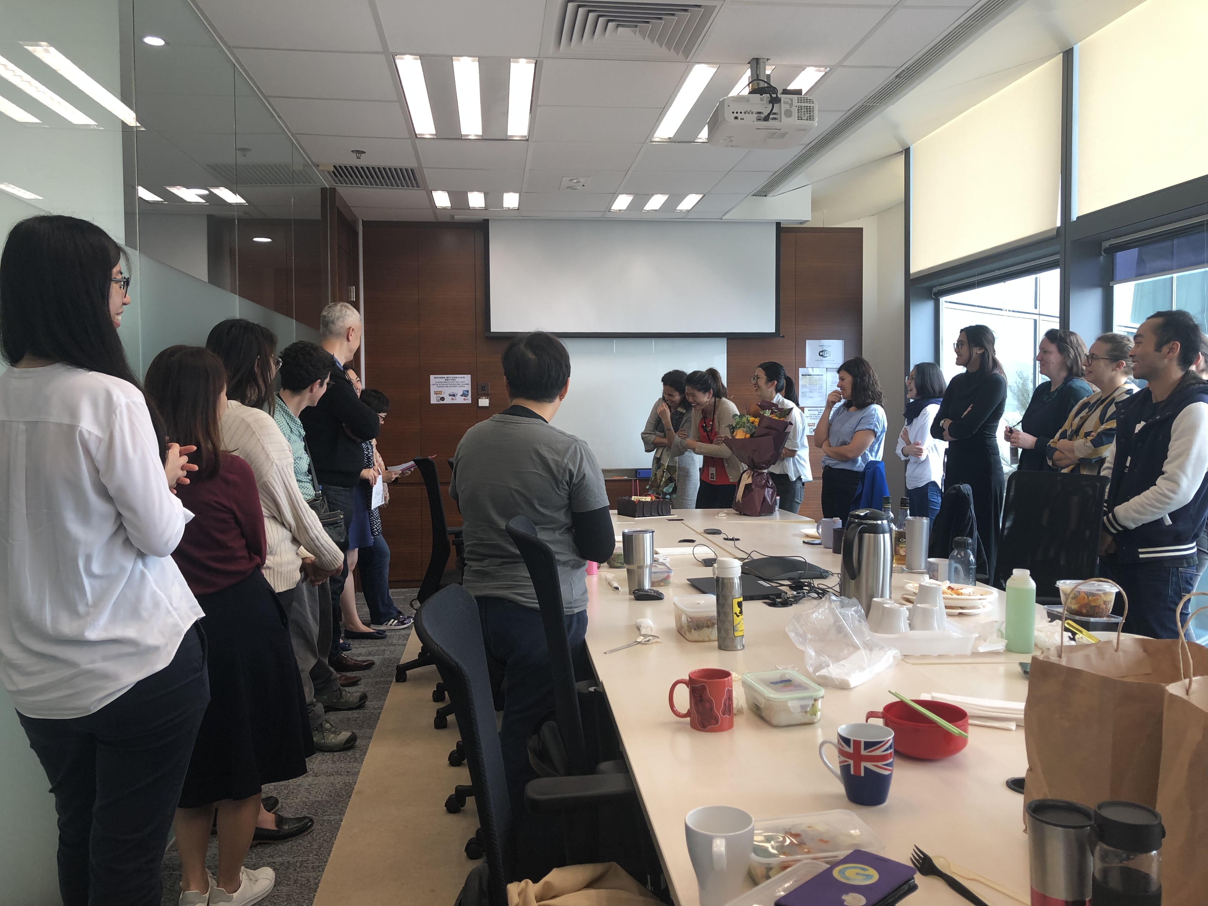 上班的這第一週,和來自法國的主管Christel Pesme因為抵達數碼港第三棟(上班大樓)的時間相仿,7:45從住處出發,8:45抵達辦公室,再到辦公室外的平台公共空間,望著海動動身體,9:00上樓(辦公室9:00才開門),主管會在這個時間到平台抽煙,也是和她聊聊的好時間。